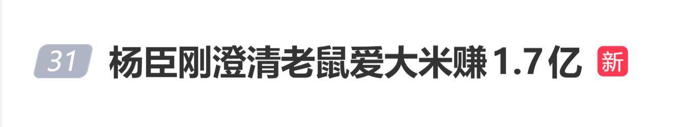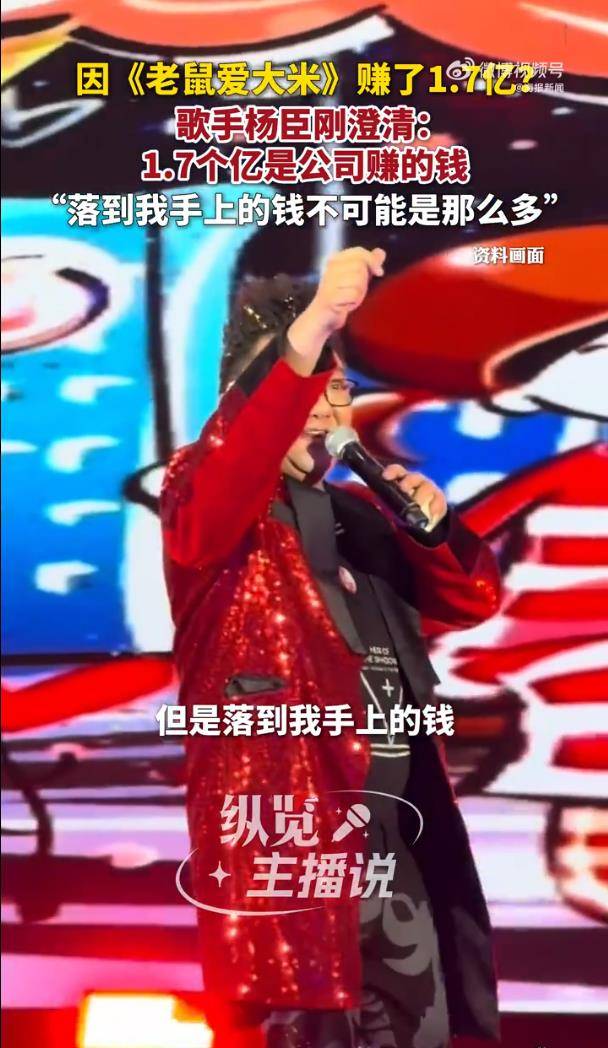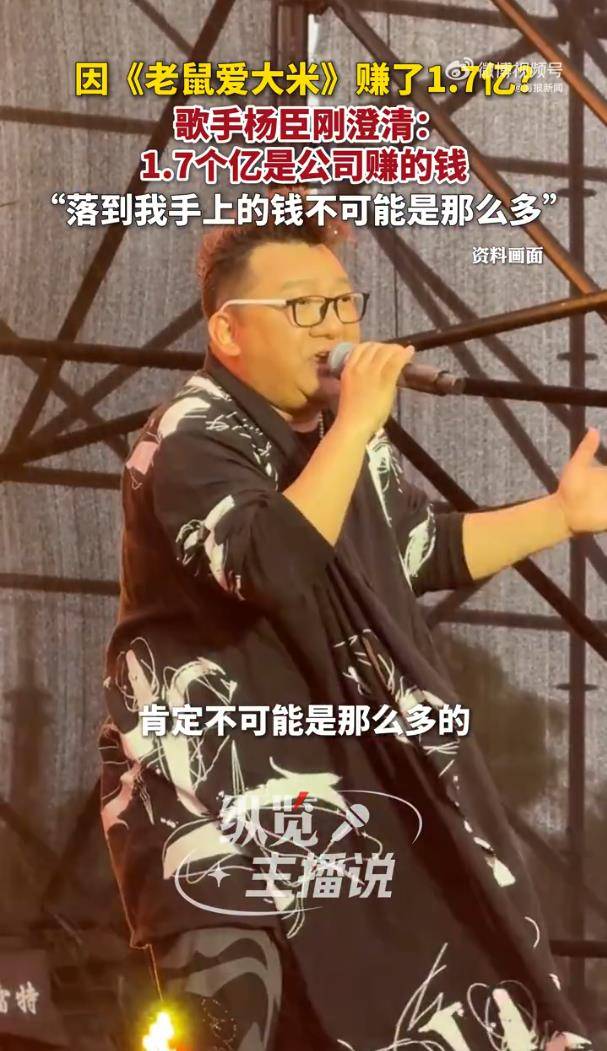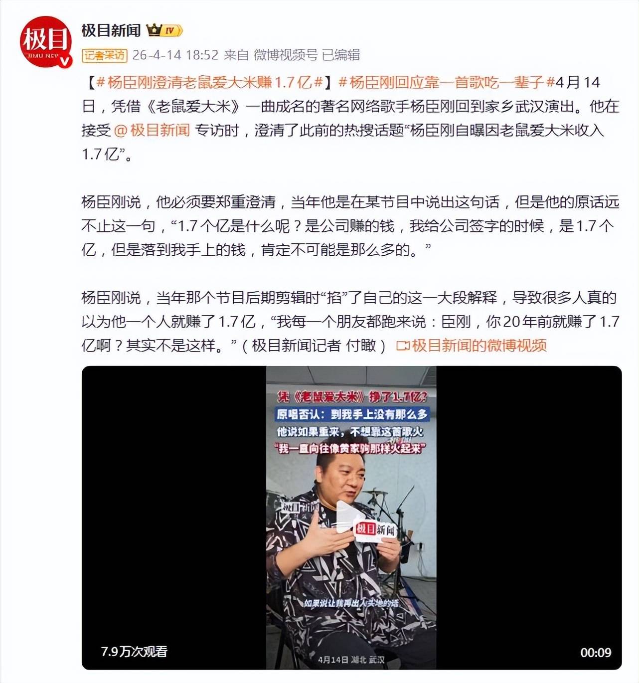据4月14日报道,凭借《老鼠爱大米》一曲爆红的杨臣刚回到家乡武汉演出。在接受专访时,他正面回应了此前沸沸扬扬的热搜话题——“杨臣刚自曝因《老鼠爱大米》收入1.7亿”。这波操作,被不少网友调侃为“二十年了,还在为当年的天价账单解释”。